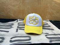 A 100% polyester front and 100% nylon mesh weave back One size with an adjustable plastic snap closure: 22.8" (58cm).